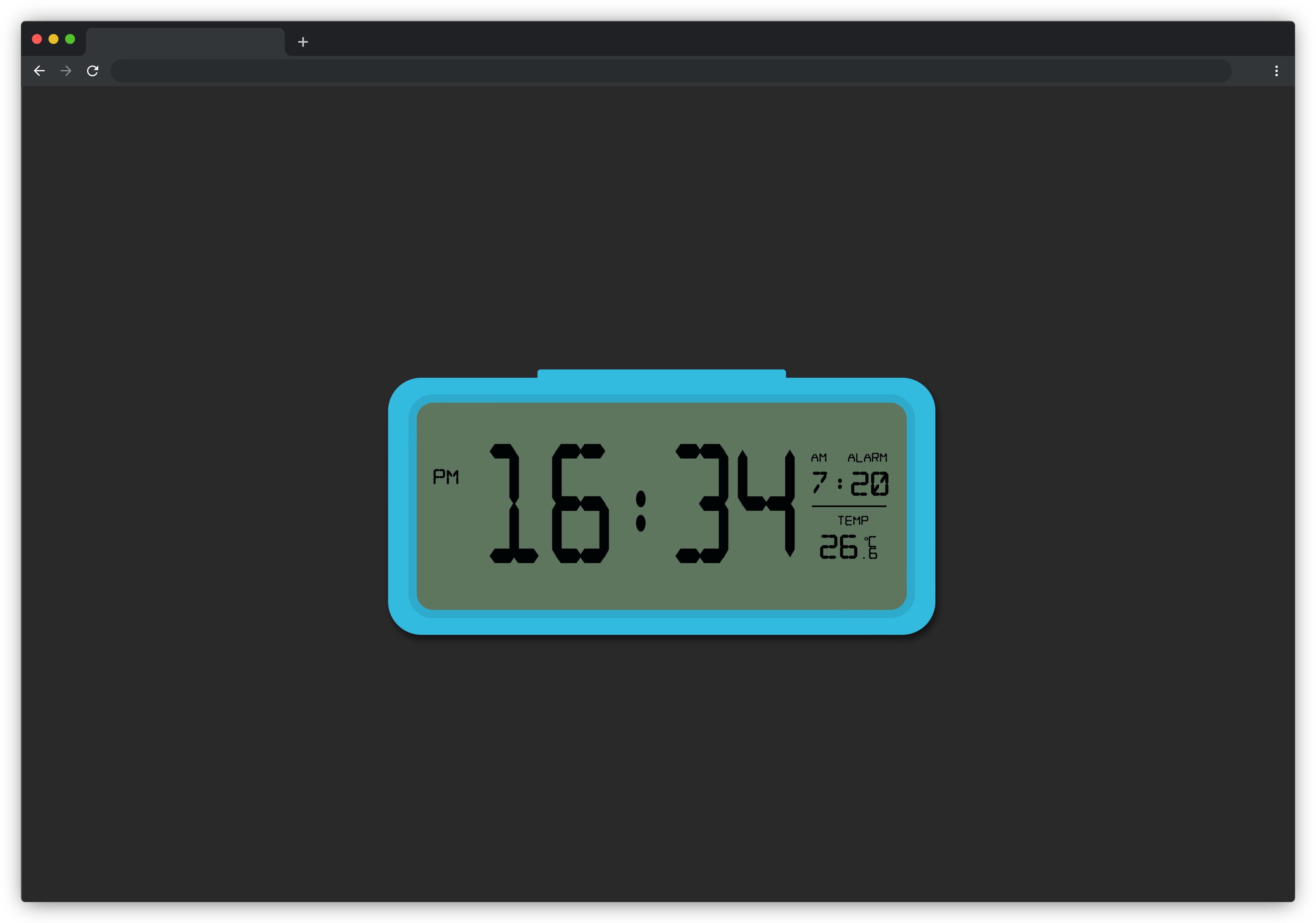A clock for the Weekly 7 challenge. Design based on my own real clock (check out README.md to see how it actually looks like!) Features period (am/pm), time, alarm, and temperature. Only the time works.